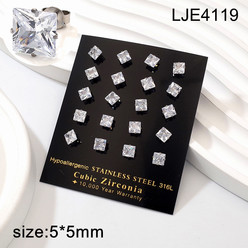 Home > Level A Stainless Steel Jewelry Steel color White Square Zircon Earrings