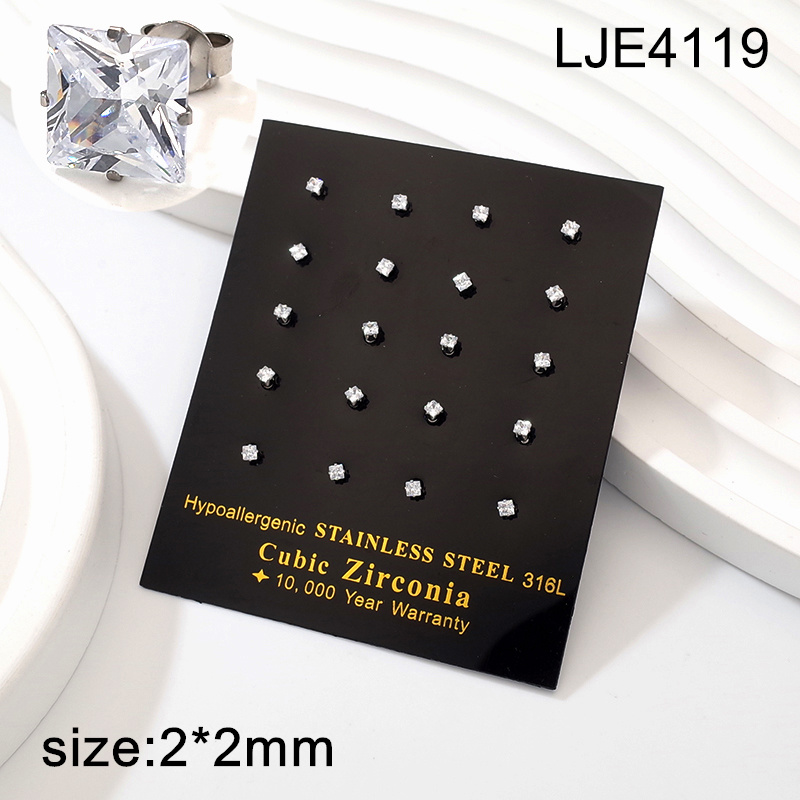 Level A Stainless Steel Jewelry Steel color White Square Zircon Earrings