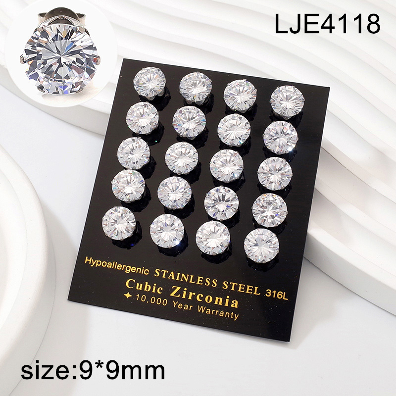 Home > Level A Stainless Steel Jewelry Steel color White Round Zircon Earrings