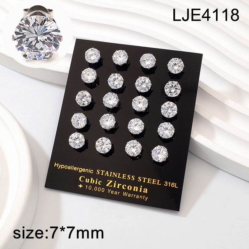 Home > Level A Stainless Steel Jewelry Steel color White Round Zircon Earrings