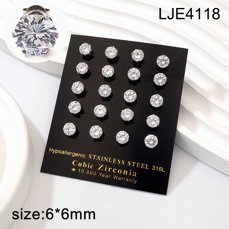 Level A Stainless Steel Jewelry Steel color White Round Zircon Earrings