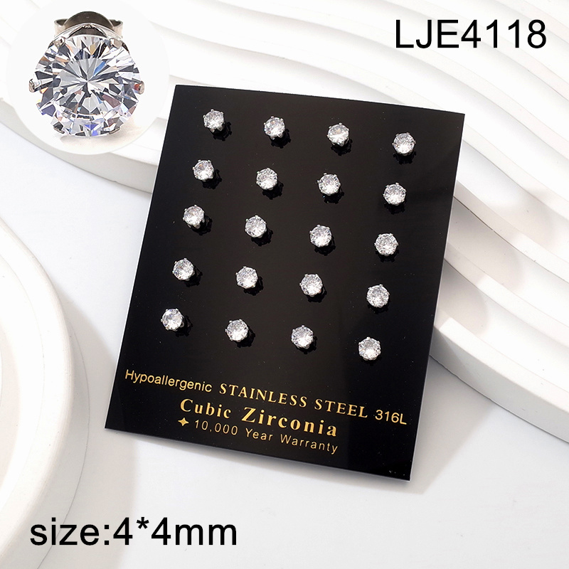 Level A Stainless Steel Jewelry Steel color White Round Zircon Earrings