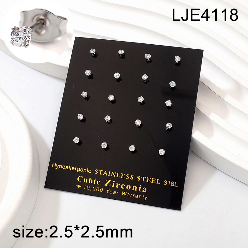Level A Stainless Steel Jewelry Steel color White Round Zircon Earrings