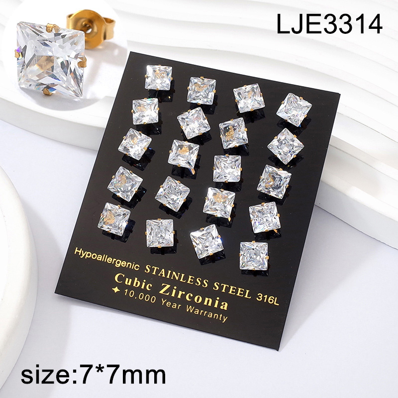 Home > Level A Stainless Steel Jewelry Golden White Square Zircon Earrings