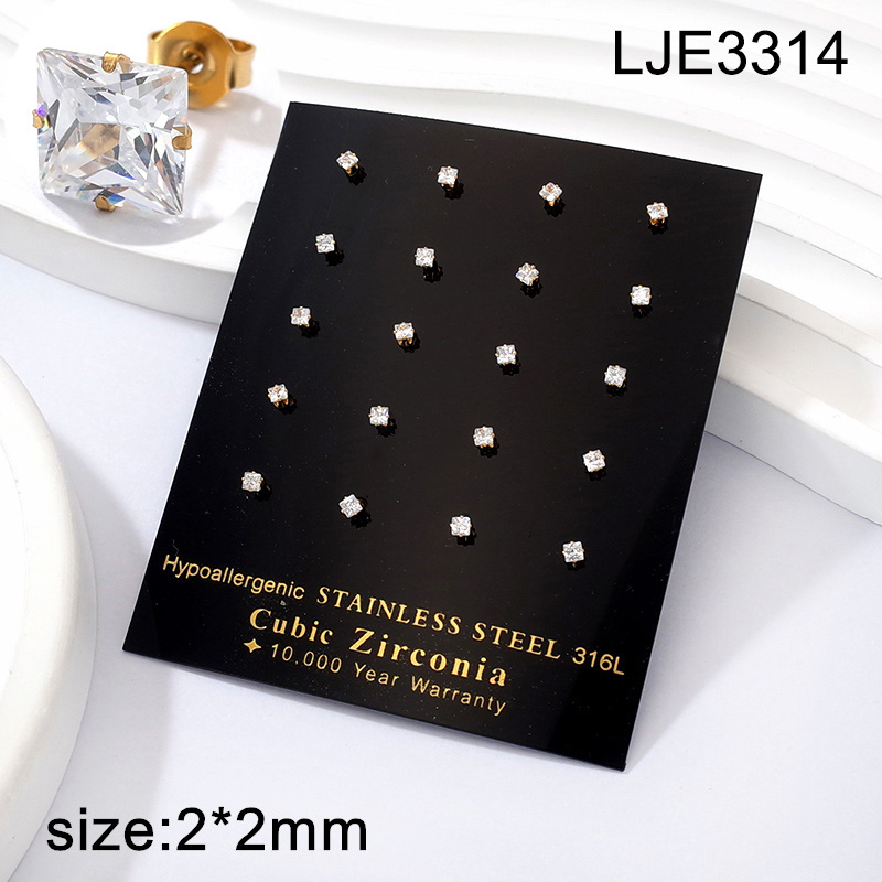 Home > Level A Stainless Steel Jewelry Golden White Square Zircon Earrings