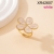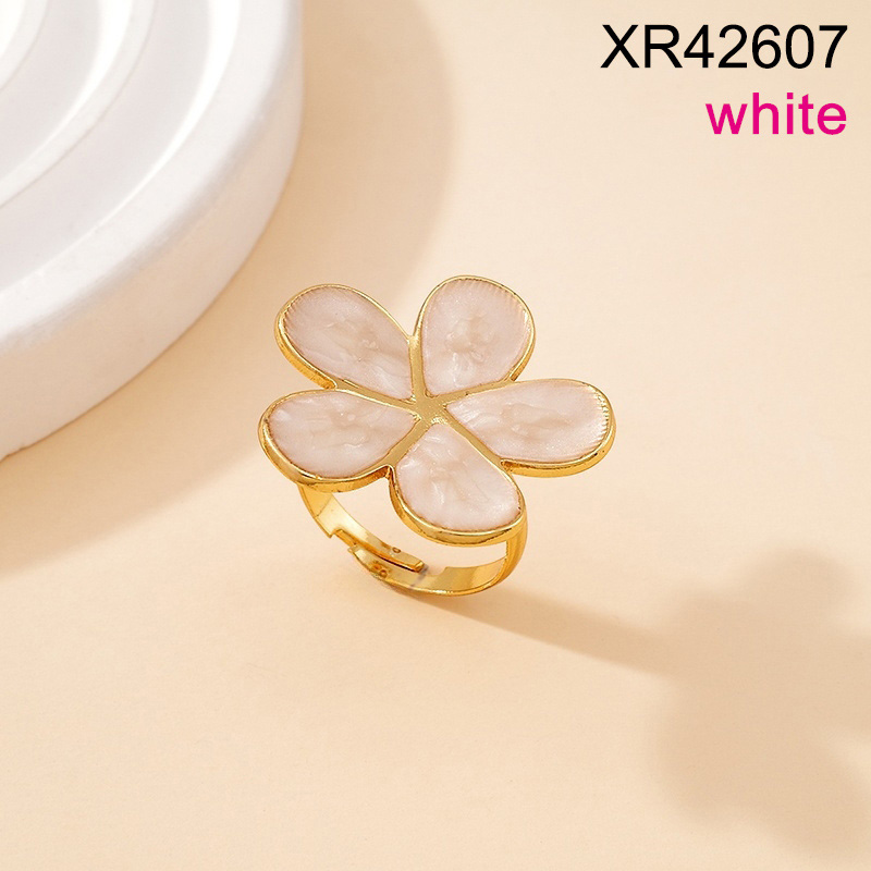 Level B Stainless Steel New Trendy Women Jewelry Drip Oil/Enamel White Flower Golden Open Rings;Ring size can be adjusted freely
