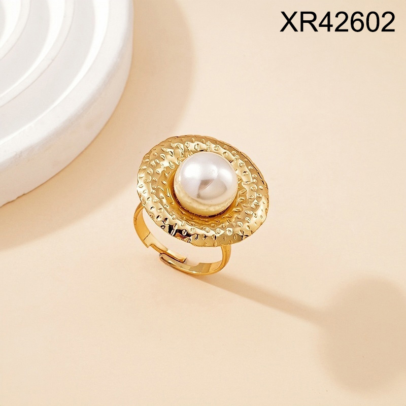 Level B Stainless Steel New Trendy Women Jewelry Pearl Style/Plastic Beads Round Golden Open Rings;Ring size can be adjusted freely