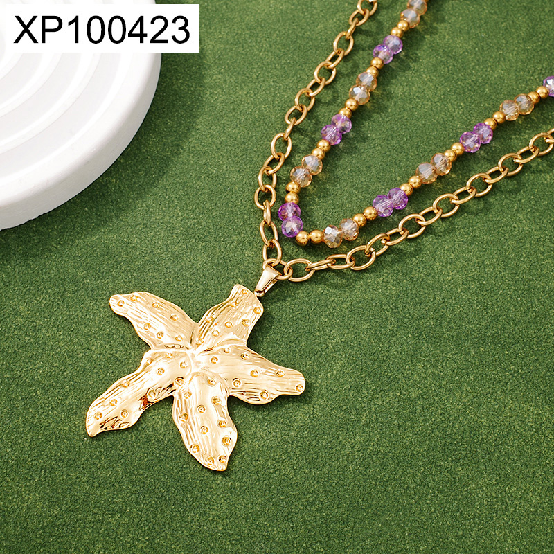 Home > Level B Stainless Steel New Trendy Women Jewelry Two Layers Chain Flower Golden Pendant