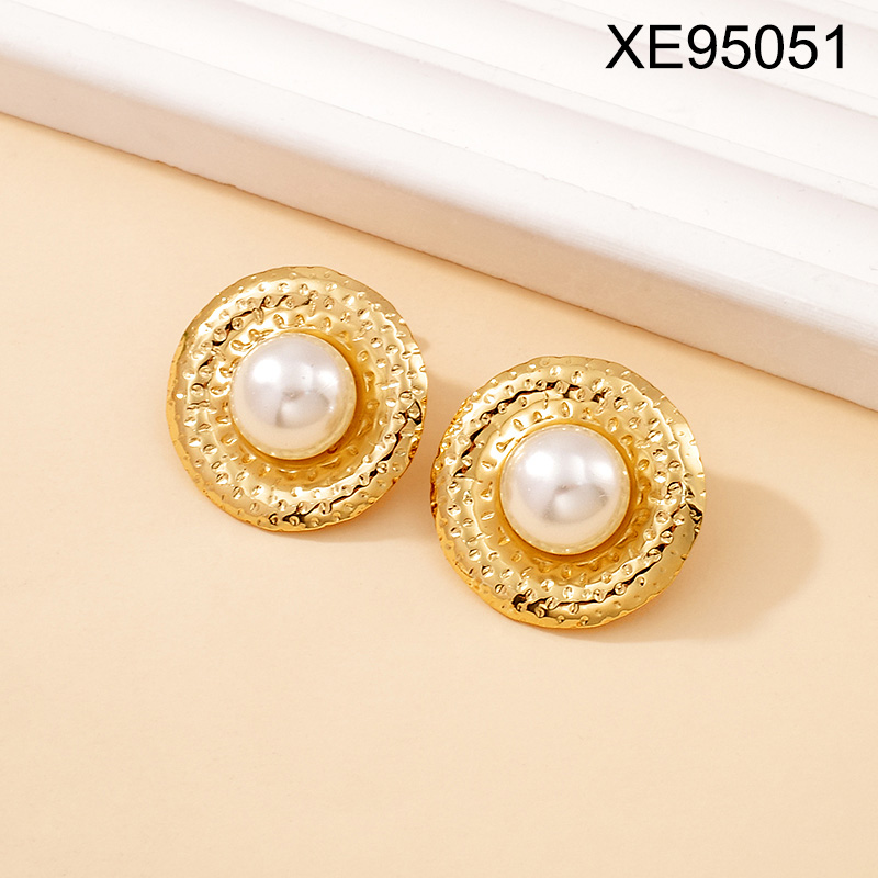 Level B Stainless Steel New Trendy Women Jewelry Pearl Style/Plastic Beads Round Golden Earrings