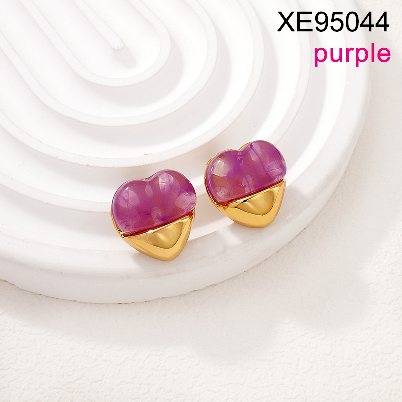 Home > Level B Stainless Steel New Trendy Women Jewelry Purple Resin Heart Golden Earrings