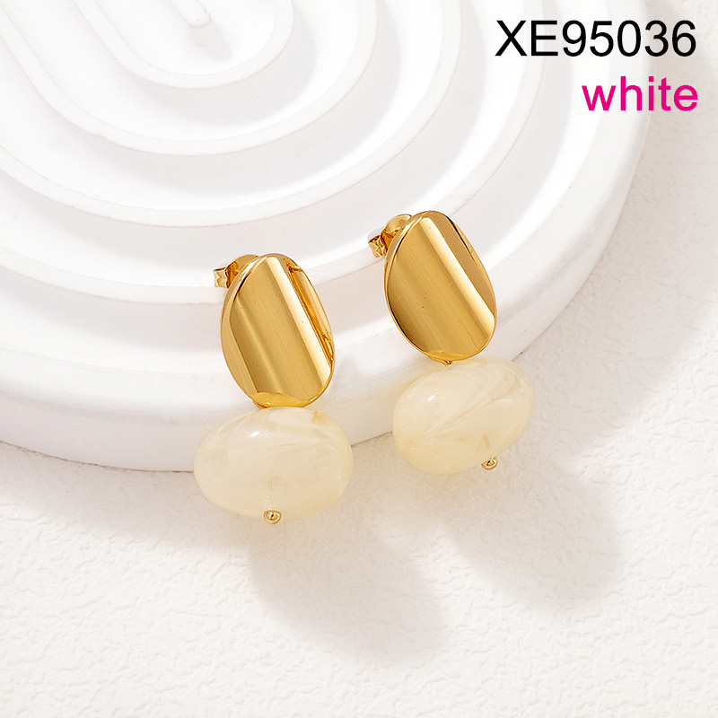 Home > Level B Stainless Steel New Trendy Women Jewelry White Resin Geometry Golden Earrings