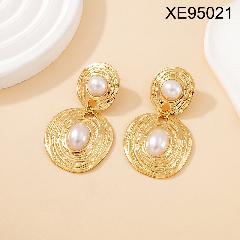Level B Stainless Steel New Trendy Women Jewelry Pearl Style/Plastic Beads Geometry Golden Earrings