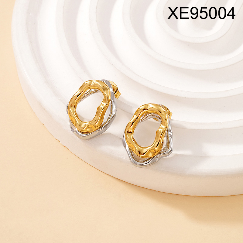 Home > Level B Stainless Steel New Trendy Women Jewelry Geometry Two Tone Earrings
