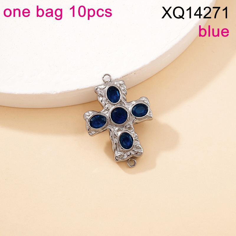Home > Level B Stainless Steel New Trendy Jewelry Cross Blue Crystal zirconium Steel color DIY Charms