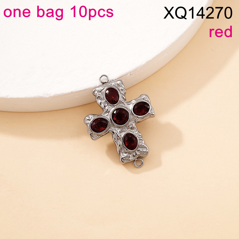 Home > Level B Stainless Steel New Trendy Jewelry Cross Red Crystal zirconium Steel color DIY Charms