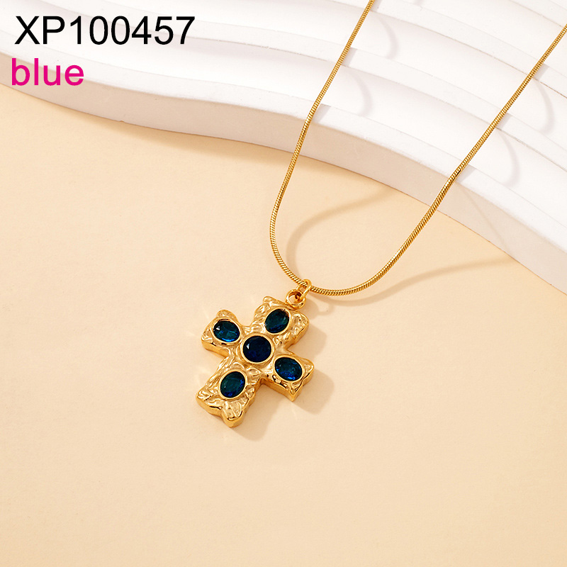Level B Stainless Steel New Trendy Women Jewelry Cross Blue Crystal zirconium Golden Pendant