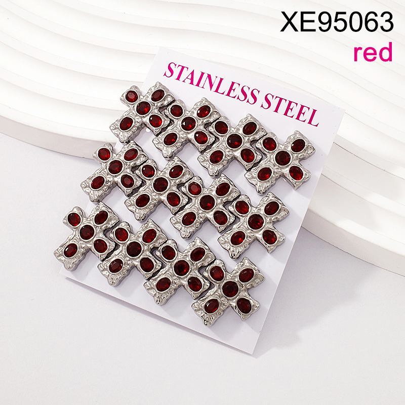Level B Stainless Steel New Trendy Women Jewelry Cross Red Crystal zirconium Steel color Earrings