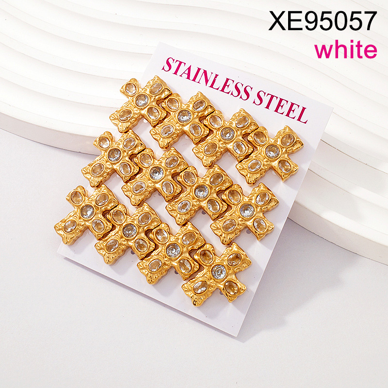 Home > Level B Stainless Steel New Trendy Women Jewelry Cross White Crystal zirconium Golden Earrings
