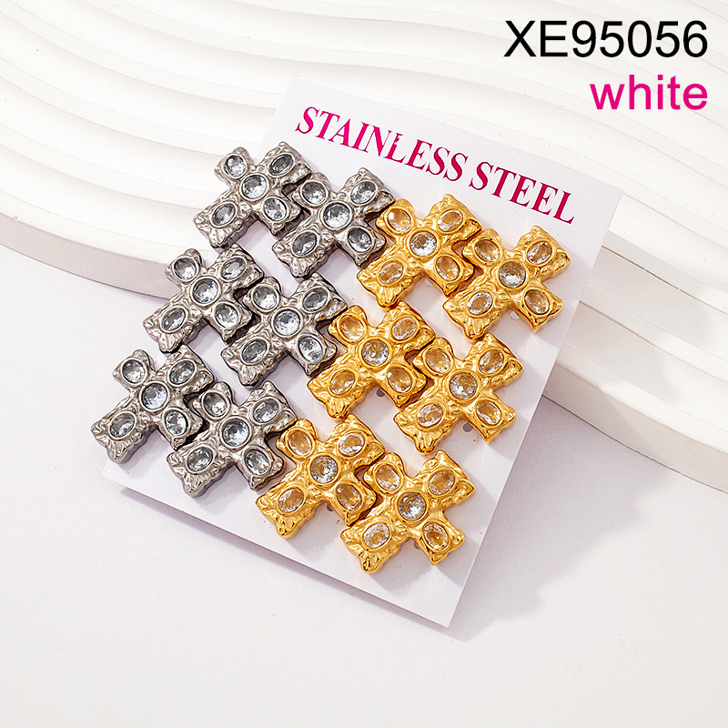 Home > Level B Stainless Steel New Trendy Women Jewelry Cross White Crystal zirconium Two Tone Earrings