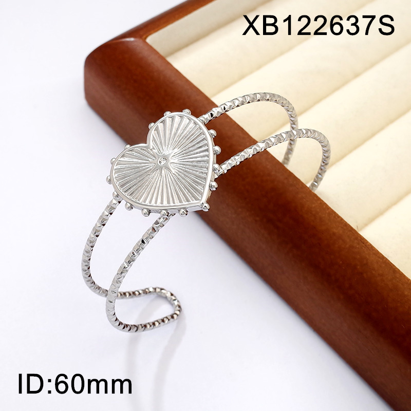 Home > Level A Stainless Steel New Trendy Women Jewelry Heart Steel color Open Bangle;Bangle size can be adjusted freely