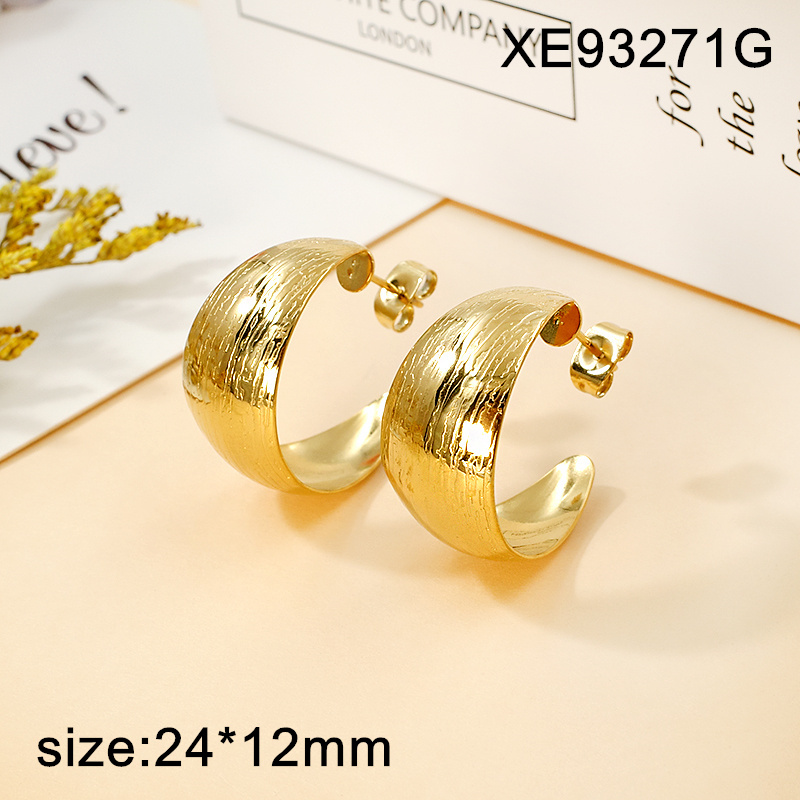 Level A Stainless Steel New Trendy Women Jewelry Oval Shape Golden C-Shape Style Earrings