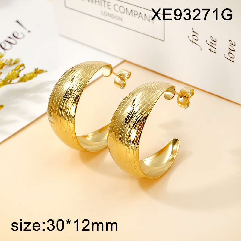 Level A Stainless Steel New Trendy Women Jewelry Oval Shape Golden C-Shape Style Earrings