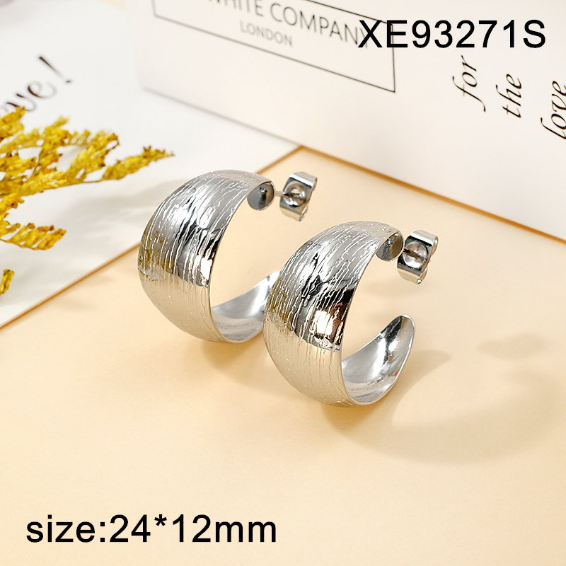 Level A Stainless Steel New Trendy Women Jewelry Oval Shape Steel color C-Shape Style Earrings