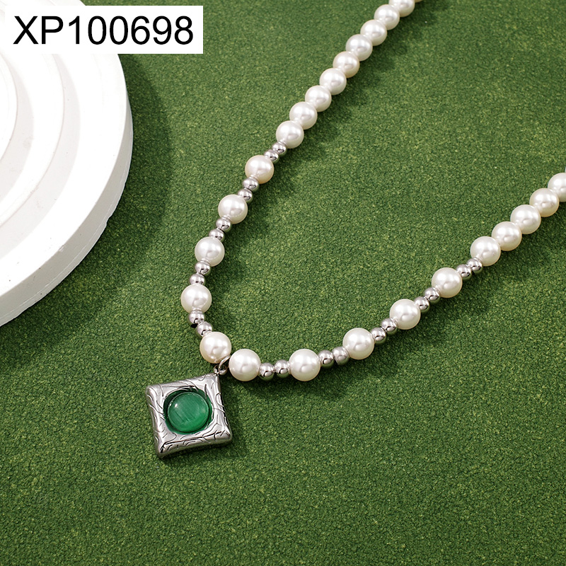 Level B Stainless Steel New Trendy Women Jewelry Pearl Style/Plastic Beads Rhombus Steel color Pendant