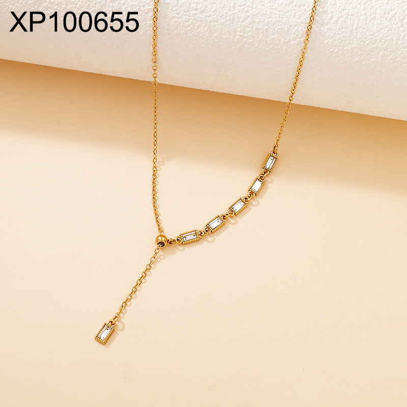 Home > Level B Stainless Steel New Trendy Women Jewelry White Zircon Golden Pendant