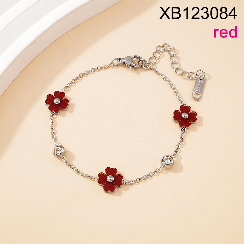 Level B Stainless Steel New Trendy Women Jewelry Red Flower Steel color Bracelet