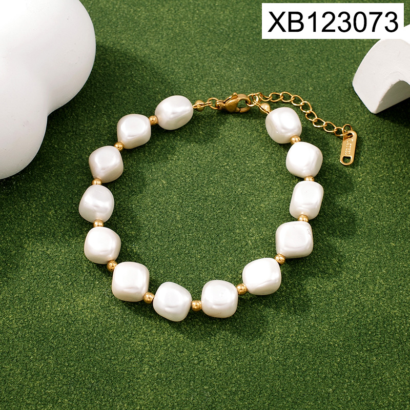 Level B Stainless Steel New Trendy Women Jewelry Pearl Style/Plastic Beads Golden Bracelet