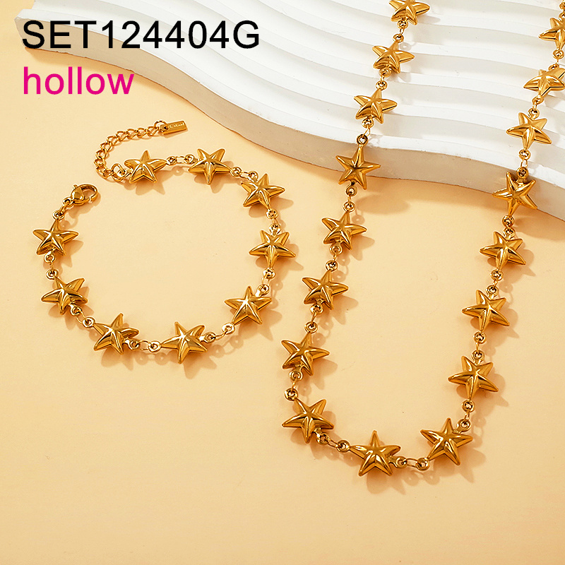 Home > Level A Stainless Steel New Trendy Women Jewelry Hollow Star Golden SET