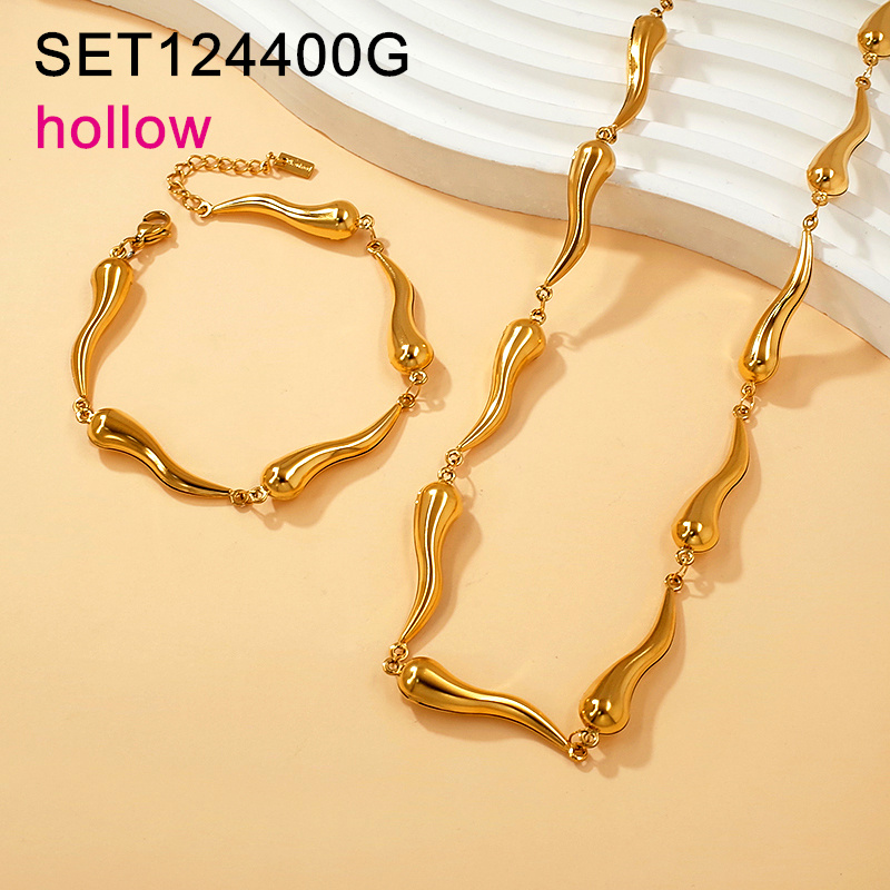 Home > Level A Stainless Steel New Trendy Women Jewelry Hollow Water Drip Golden SET