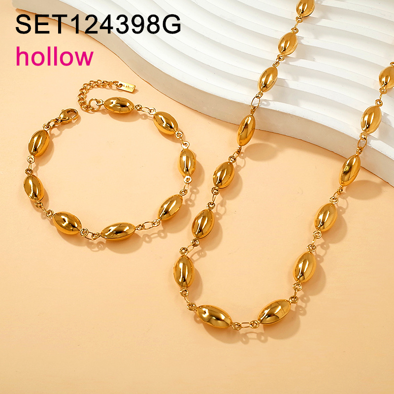 Home > Level A Stainless Steel New Trendy Women Jewelry Hollow Oval Golden SET