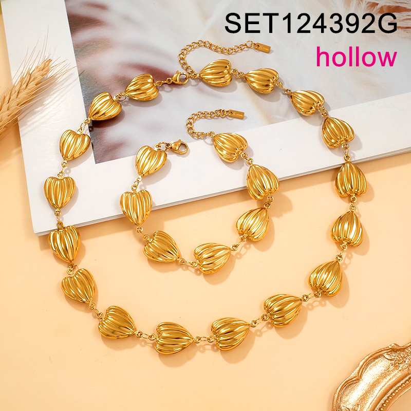 Home > Level A Stainless Steel New Trendy Women Jewelry Hollow Heart Golden Valentine's Day SET