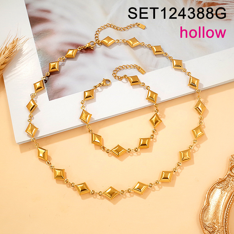 Home > Level A Stainless Steel New Trendy Women Jewelry Hollow Rhombus Golden SET