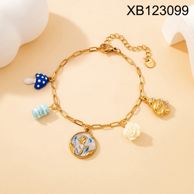 Home > Level B Stainless Steel New Trendy Women Jewelry Flower Mushroom Leaf Golden Bracelet