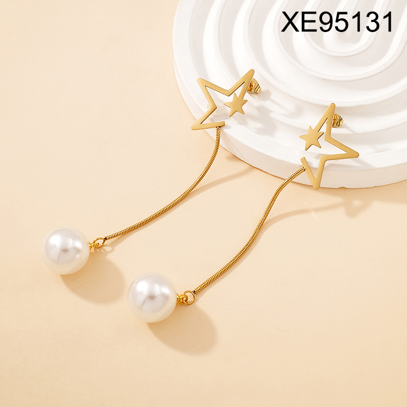 Home > Level C Stainless Steel New Trendy Women Jewelry Pearl Style/Plastic Beads Star Golden Earrings
