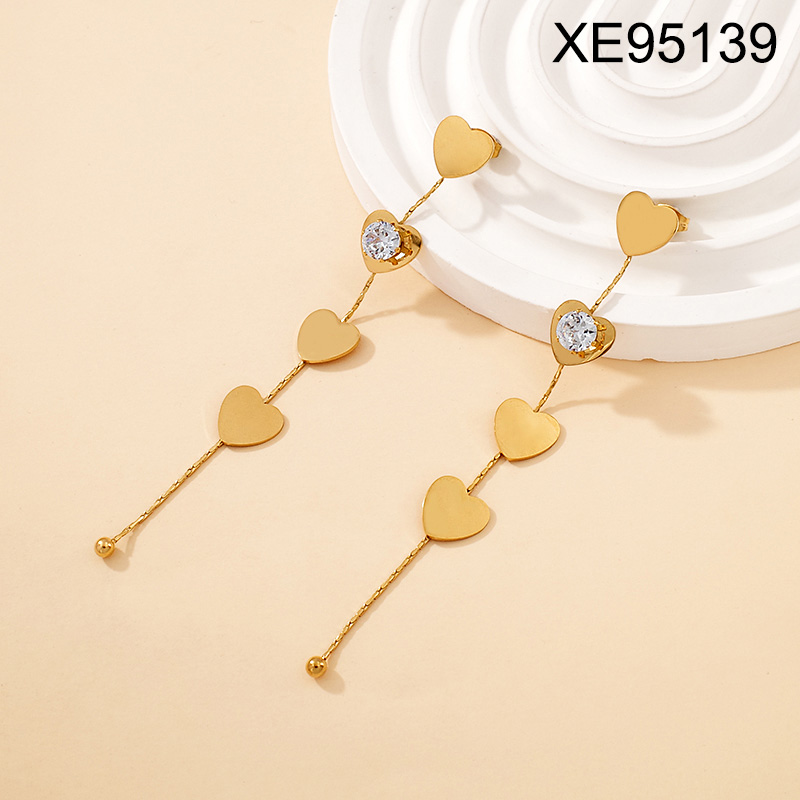 Home > Level C Stainless Steel New Trendy Women Jewelry Heart Golden Valentine's Day Tassel Earrings
