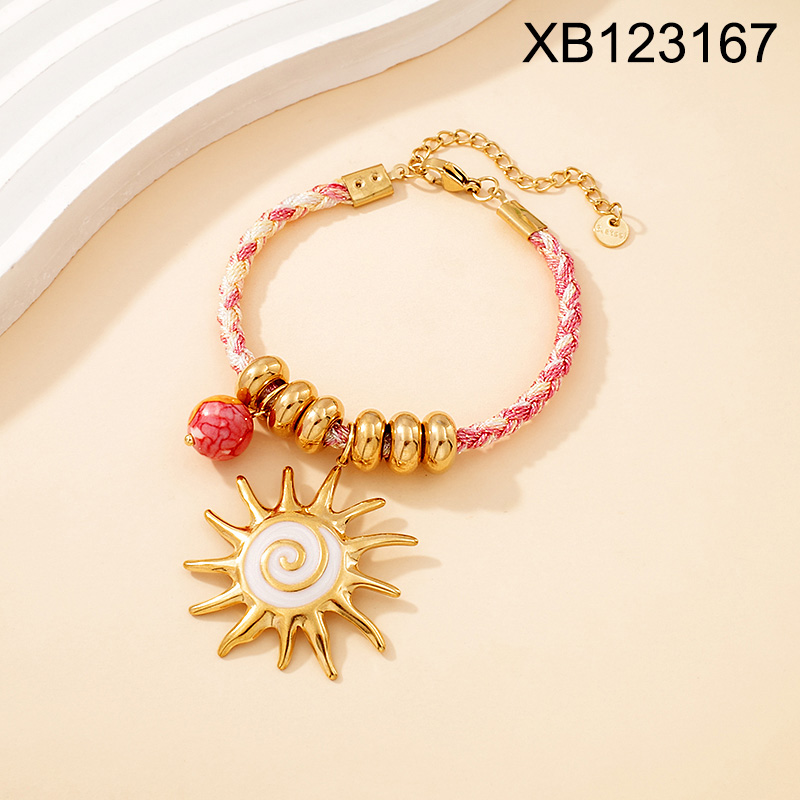 Level B Stainless Steel New Trendy Women Jewelry Drip Oil/Enamel Sun Golden Bracelet