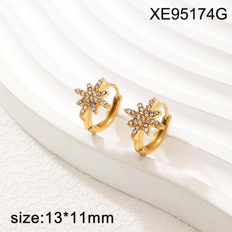 Home > Level A Stainless Steel New Trendy Women Jewelry Eight-Pointed Star Golden Hoop Earrings
