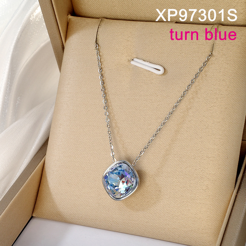 Home > Level A Stainless Steel New Trendy Women Jewelry Turn blue Stone Steel color Pendant