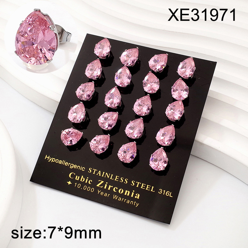 Home > Level A Stainless Steel Jewelry Hot Sale Steel color Pink Water Drip Zircon Earrings