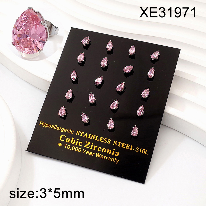 Home > Level A Stainless Steel Jewelry Hot Sale Steel color Pink Water Drip zirconium Earrings