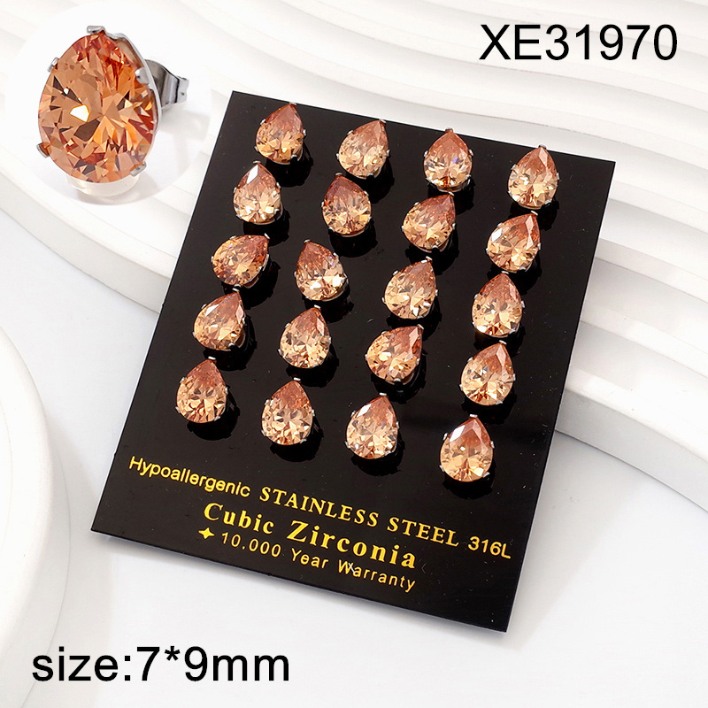 Home > Level A Stainless Steel Jewelry Hot Sale Steel color Champagne Water Drip Zircon Earrings