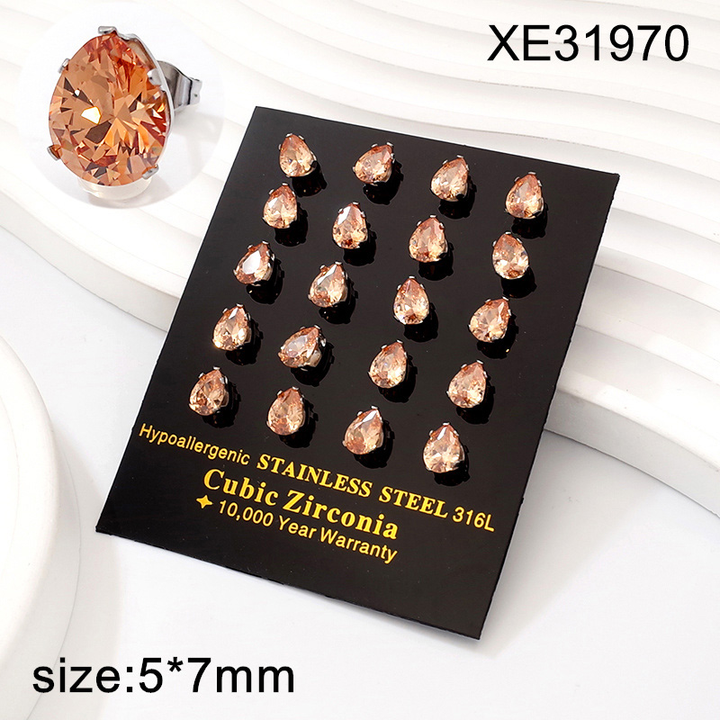 Home > Level A Stainless Steel Jewelry Hot Sale Steel color Champagne Water Drip zirconium Earrings