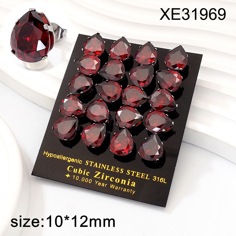 Home > Level A Stainless Steel Jewelry Hot Sale Steel color Red Water Drip Zircon Earrings