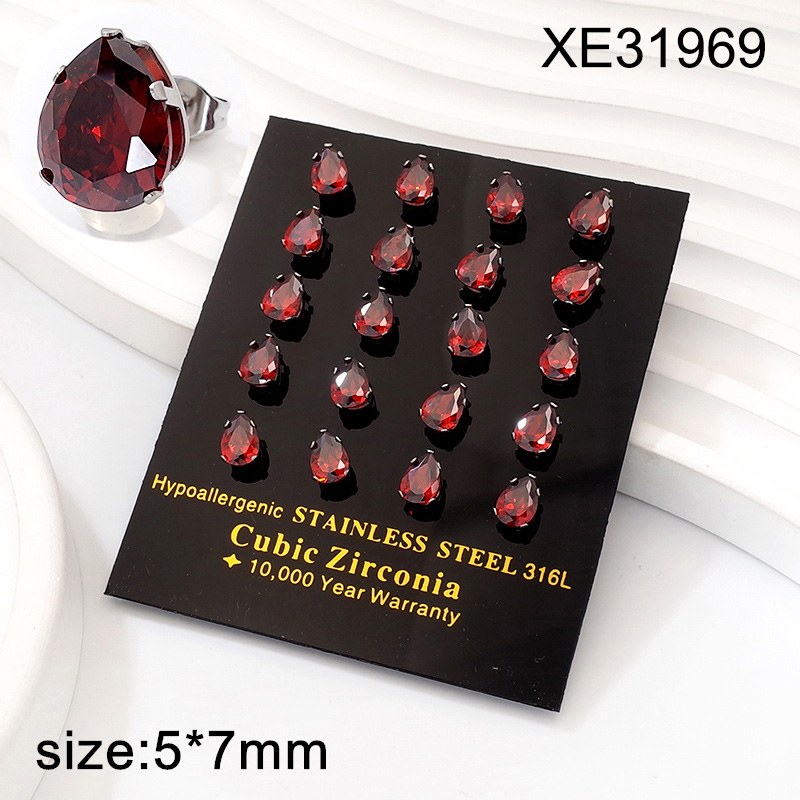 Home > Level A Stainless Steel Jewelry Hot Sale Steel color Red Water Drip zirconium Earrings