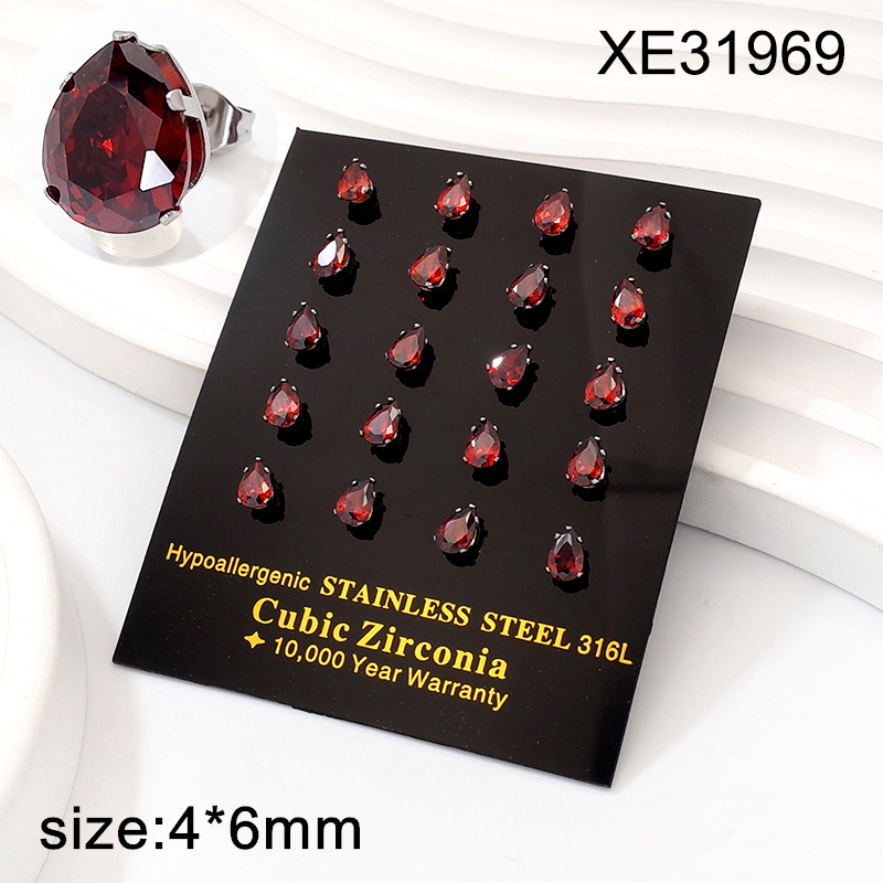 Home > Level A Stainless Steel Jewelry Hot Sale Steel color Red Water Drip zirconium Earrings