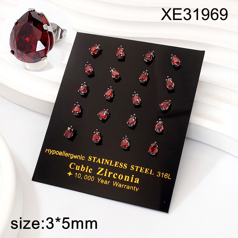 Home > Level A Stainless Steel Jewelry Hot Sale Steel color Red Water Drip zirconium Earrings
